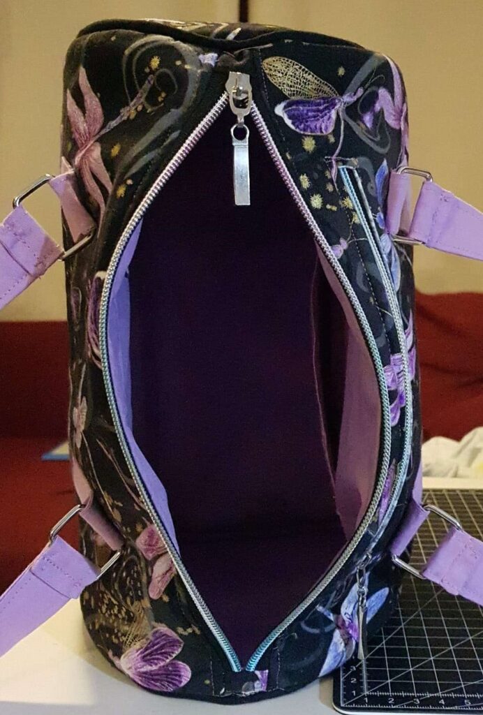 Für die Reißverschlüsse außen habe ich welche mit einem Regenbogenfarbverlauf gewählt. Wie ich finde passt das sehr schön zu den Farben der Libellen.